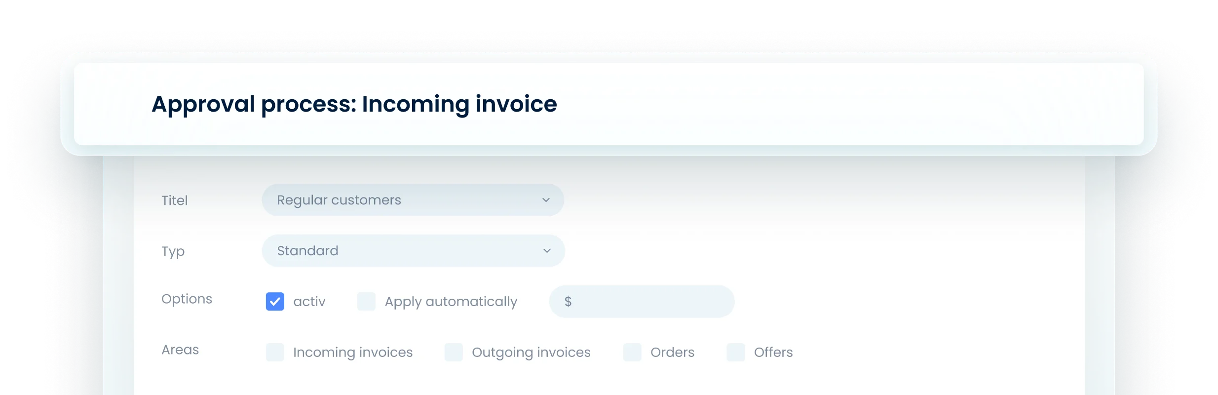 Full control over large amounts: Our approval processes allow you to set specific approval rules based on value limits for incoming invoices and receipts. This ensures that only the responsible persons make the decisions.